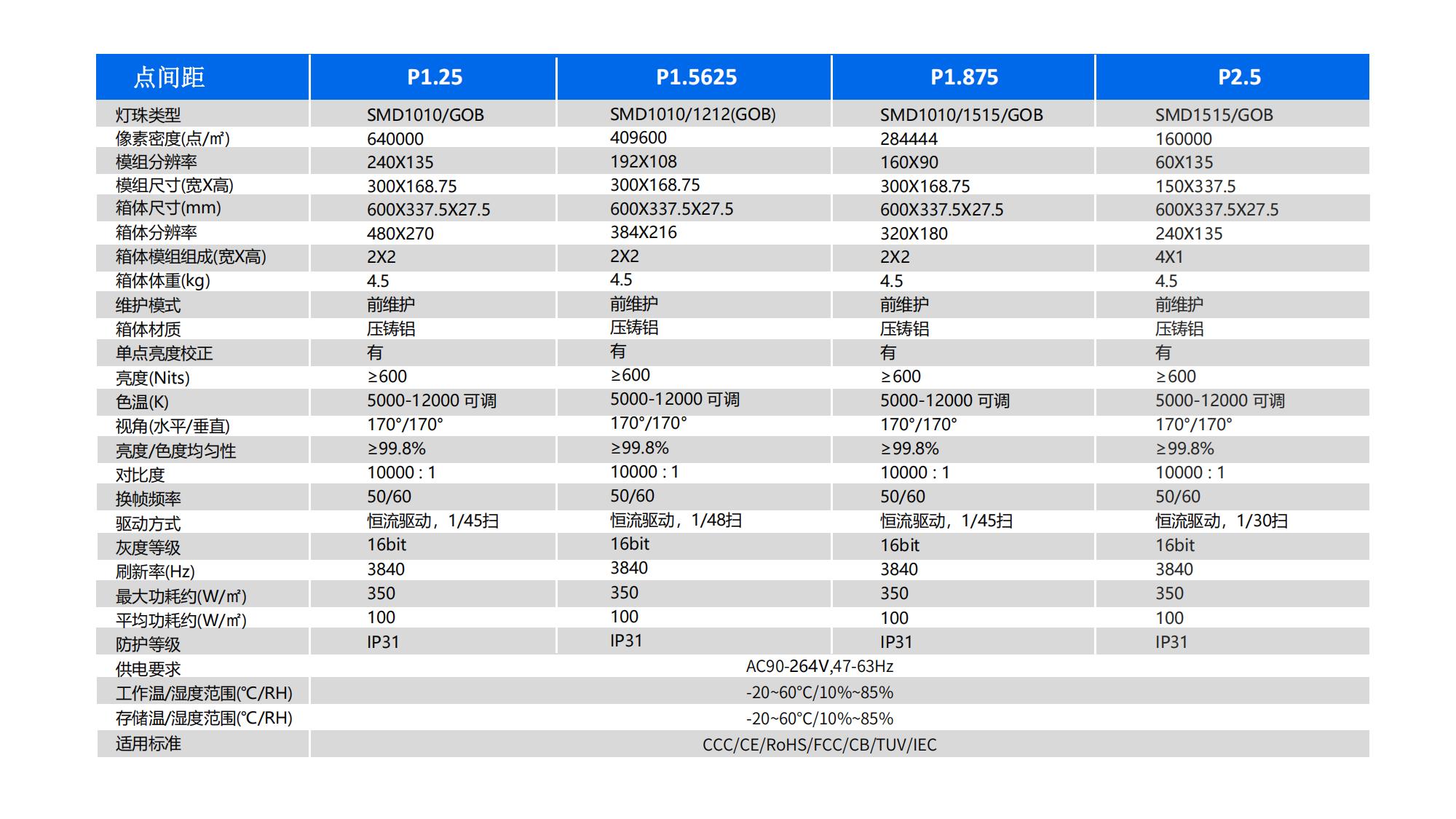 P1.25/P1.5626/P1.875/P2.5 ?超薄,超輕; ?無拼縫、超高清,色彩過度更自然; ?3840Hz超高刷新率,無拖影,暢享高清; ?CNC高精度壓鑄鋁箱體,超靜音無風(fēng)扇設(shè)計(jì); ?完全前維護(hù),安裝更靈活、更便捷。